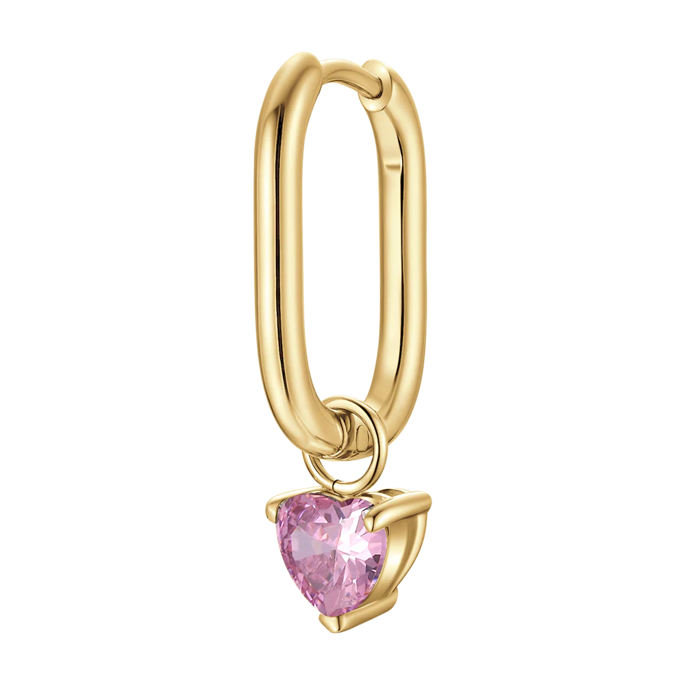 MONO ORECCHINO DONNA IN ACCIAIO COLORE ORO CON ZIRCONE ROSA