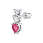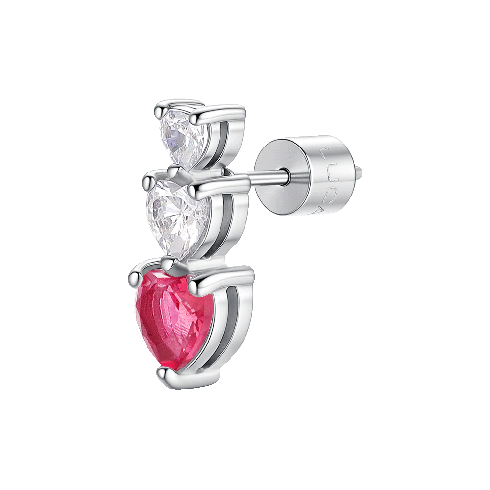 MONO ORECCHINO DONNA IN ACCIAIO CON CUORI CON ZIRCONI BIANCHI E ROSSI