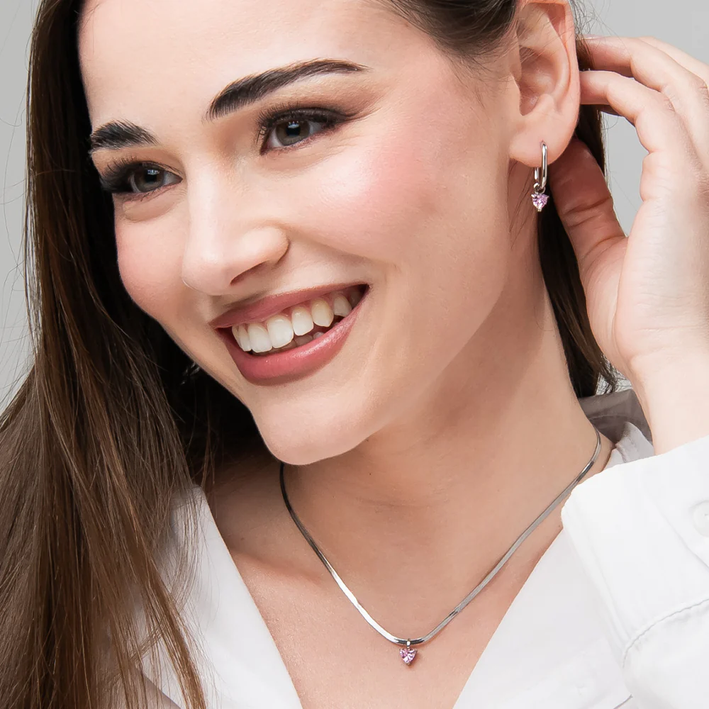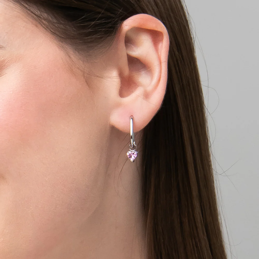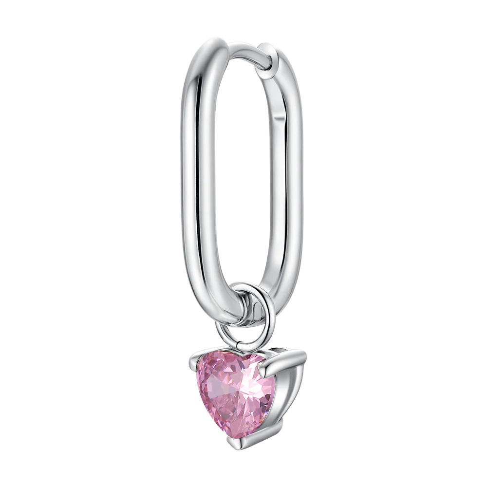 MONO ORECCHINO DONNA IN ACCIAIO CON ZIRCONE ROSA