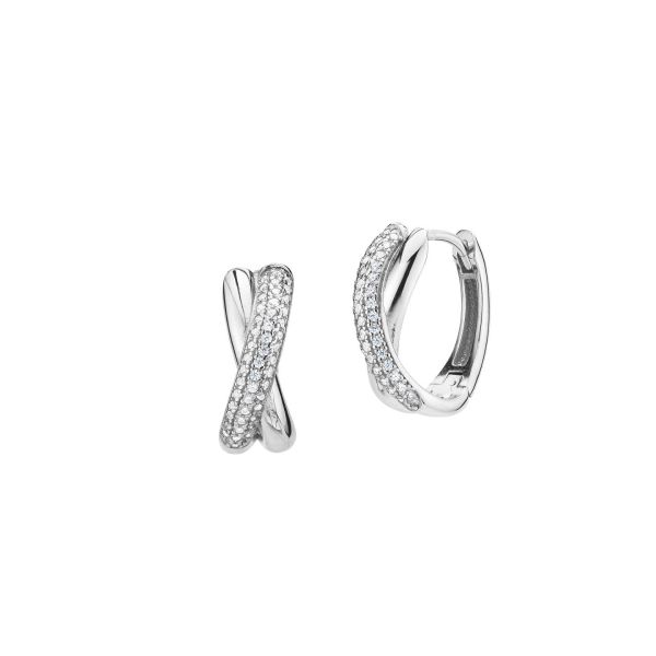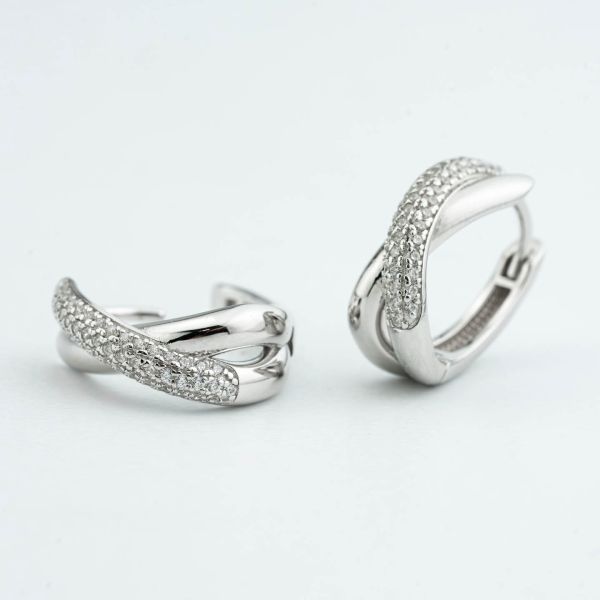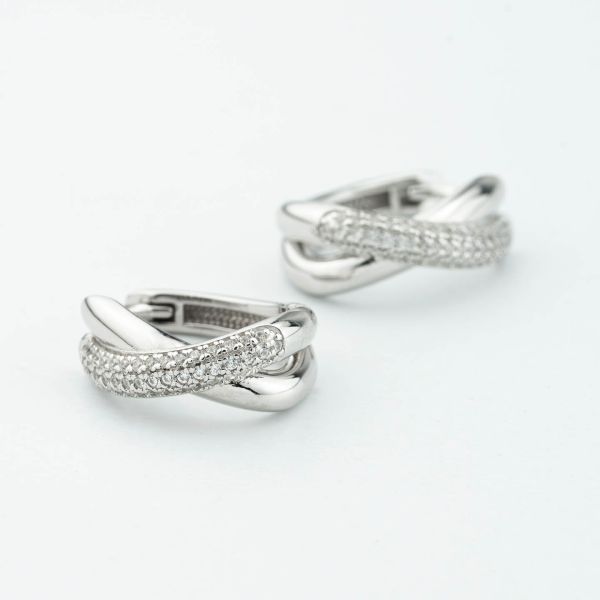 Orecchini a cerchio con intrecci lisci e in pavè di zirconi