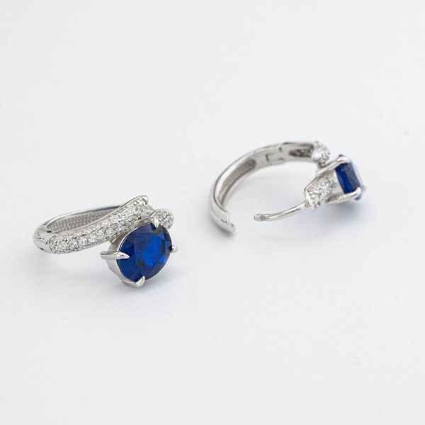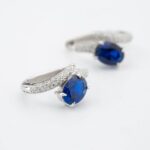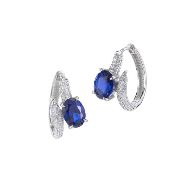 Orecchini a cerchio in argento con cristallo ovale zaffiro e pavè di zirconi