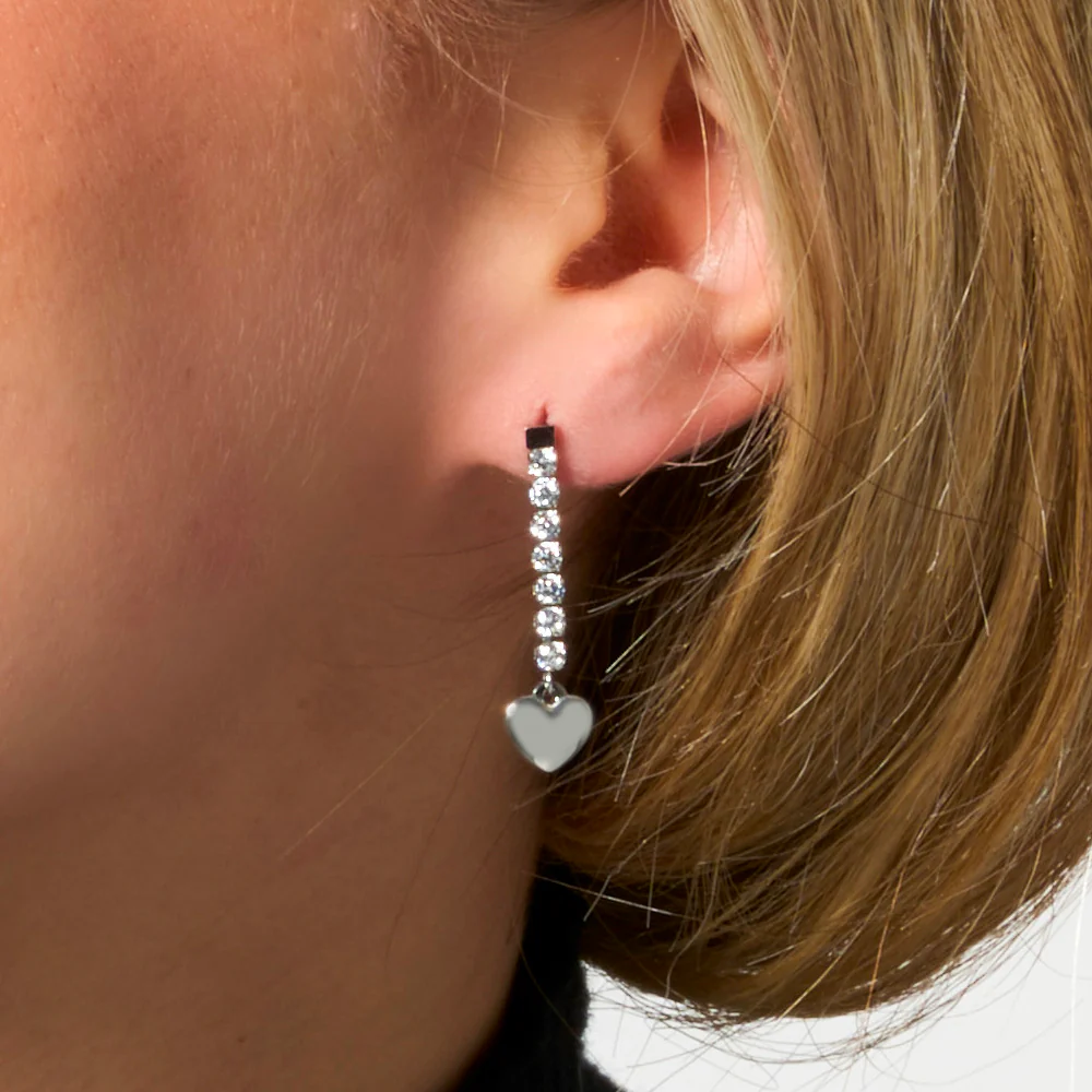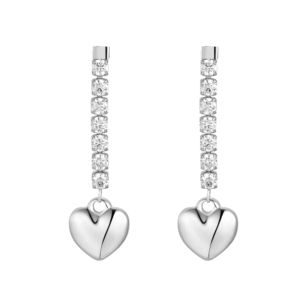 Orecchini donna in acciaio con cuore e zirconi bianchi Lunghezza: 3 cm Misura cuori: 8 x 8 mm