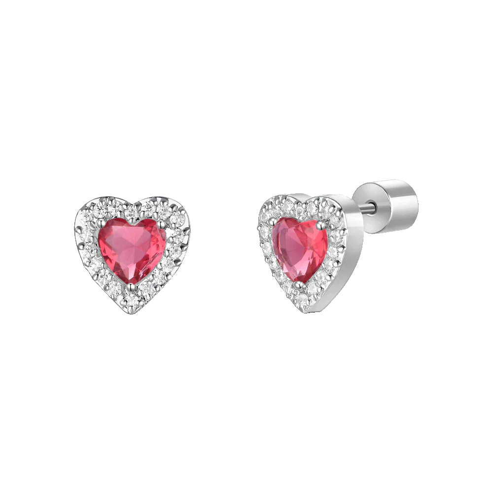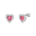 Orecchini donna in acciaio con cuori con zirconi rossi e bianchi Misura cuore: 8 x 8 mm