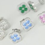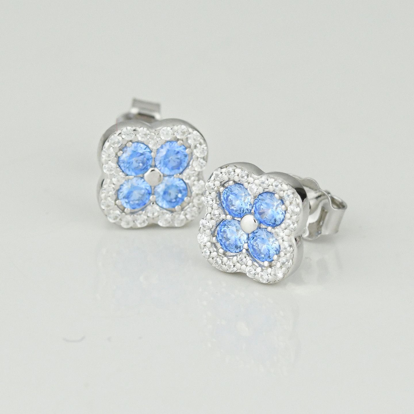 Orecchini in argento con pavè di zirconi e cristalli acquamarina