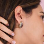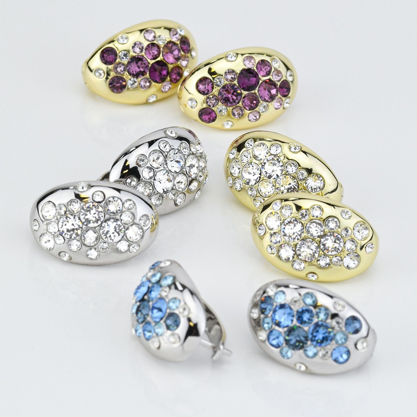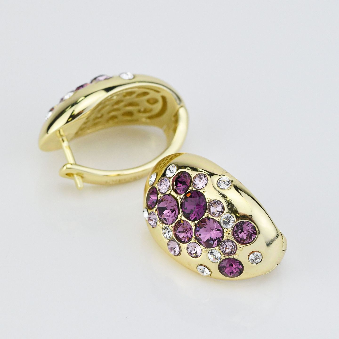 Orecchini placcati oro giallo con ovale di cristalli crystal e light ametist