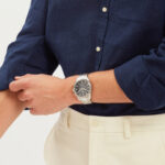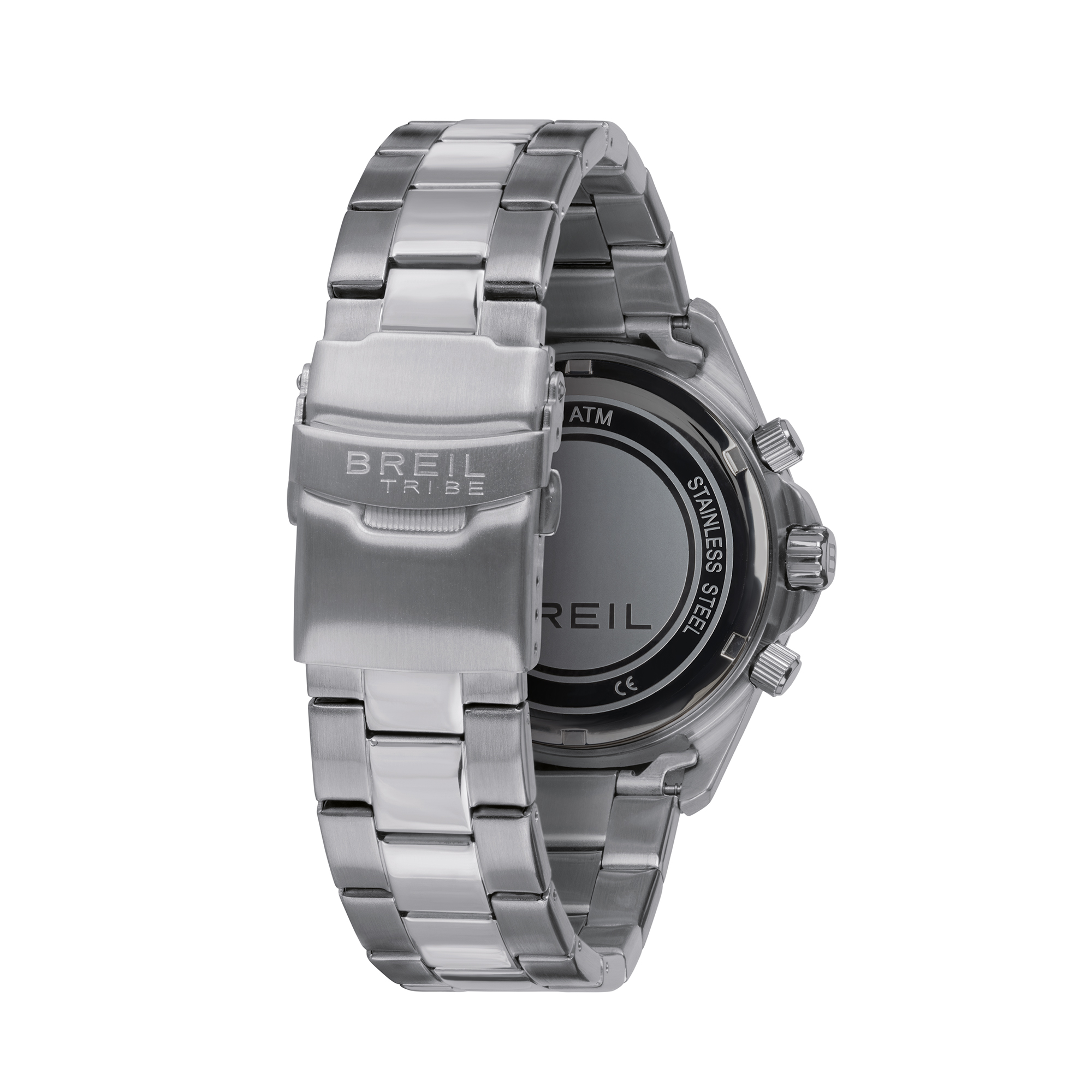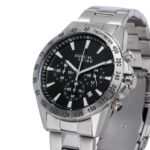 Il cronografo da uomo Sideline ha un design che lo rende unico. La lunetta in acciaio con tachimetrica incornicia un quadrante nero impreziosito da indici a contrasto. L’accostamento di acciaio lucido e satinato è riproposto anche per le maglie dell’elegante bracciale.