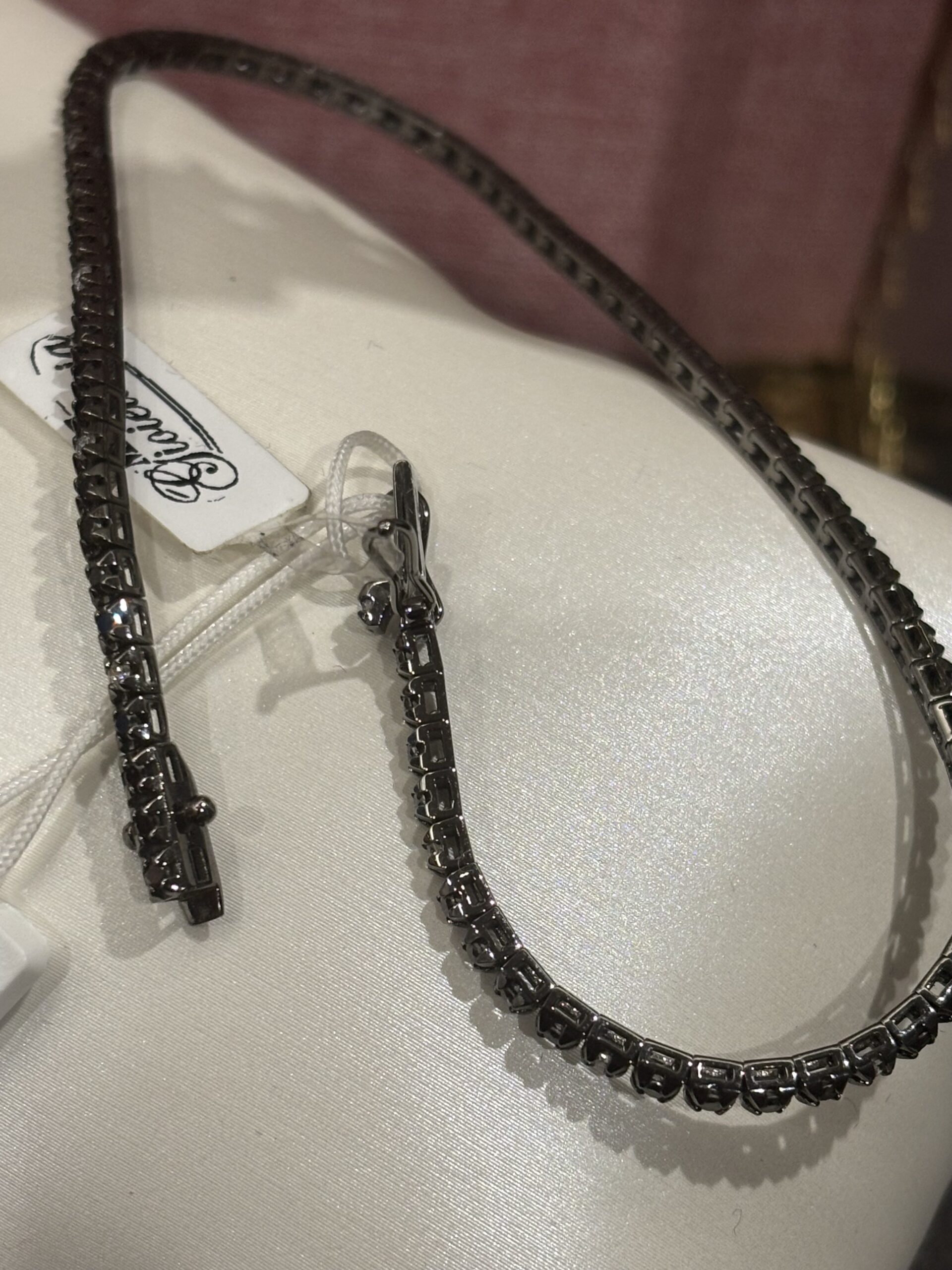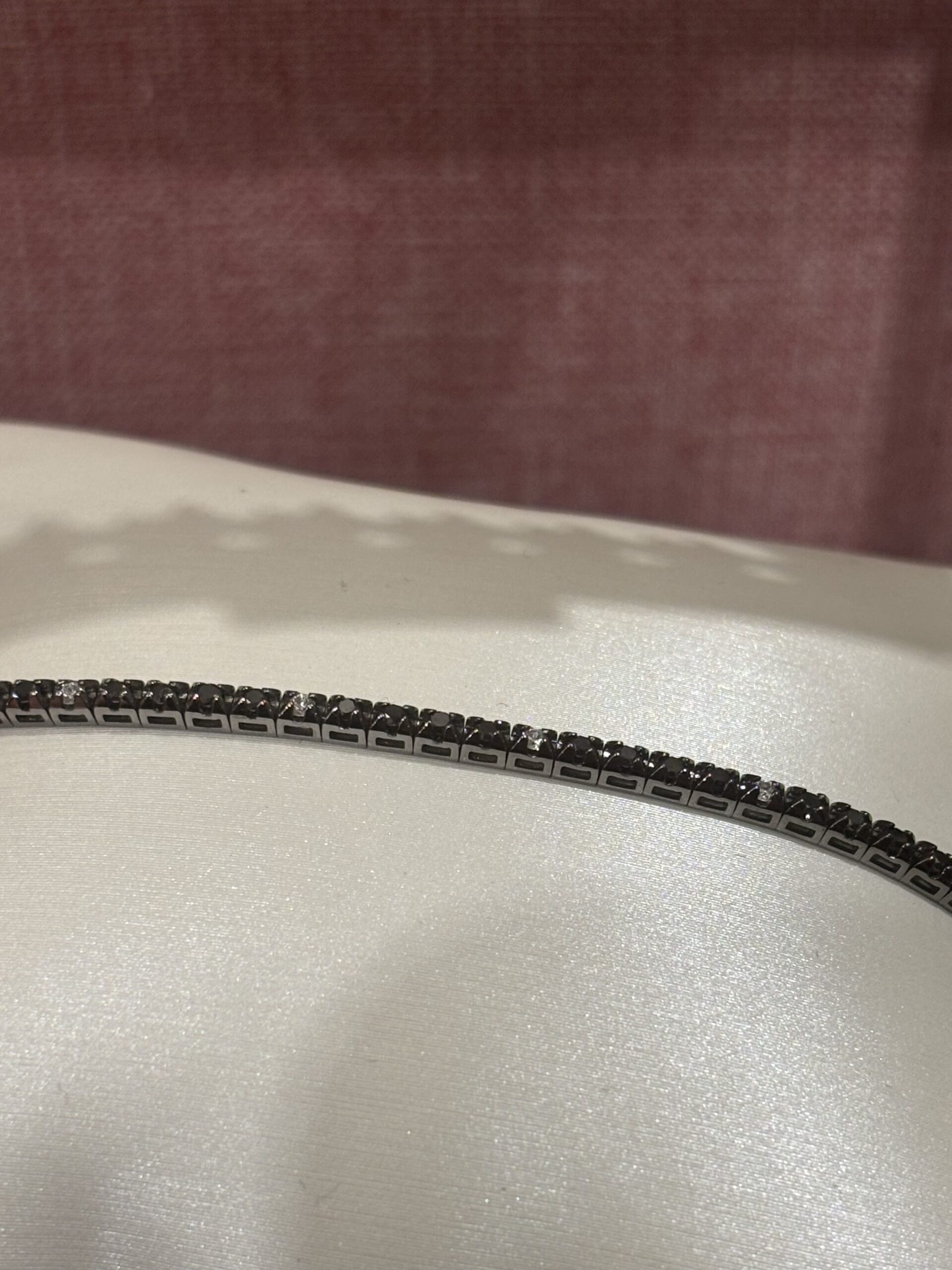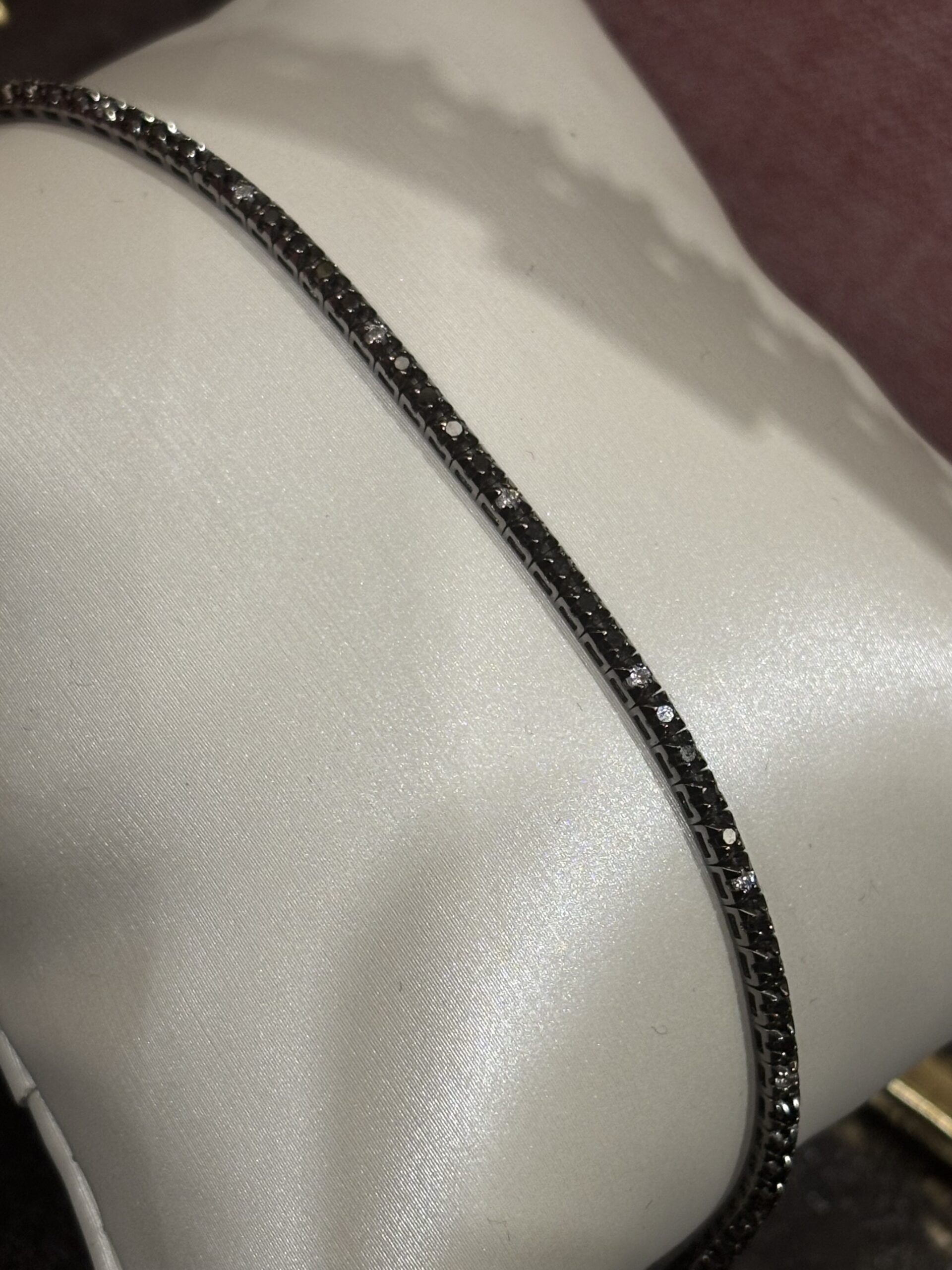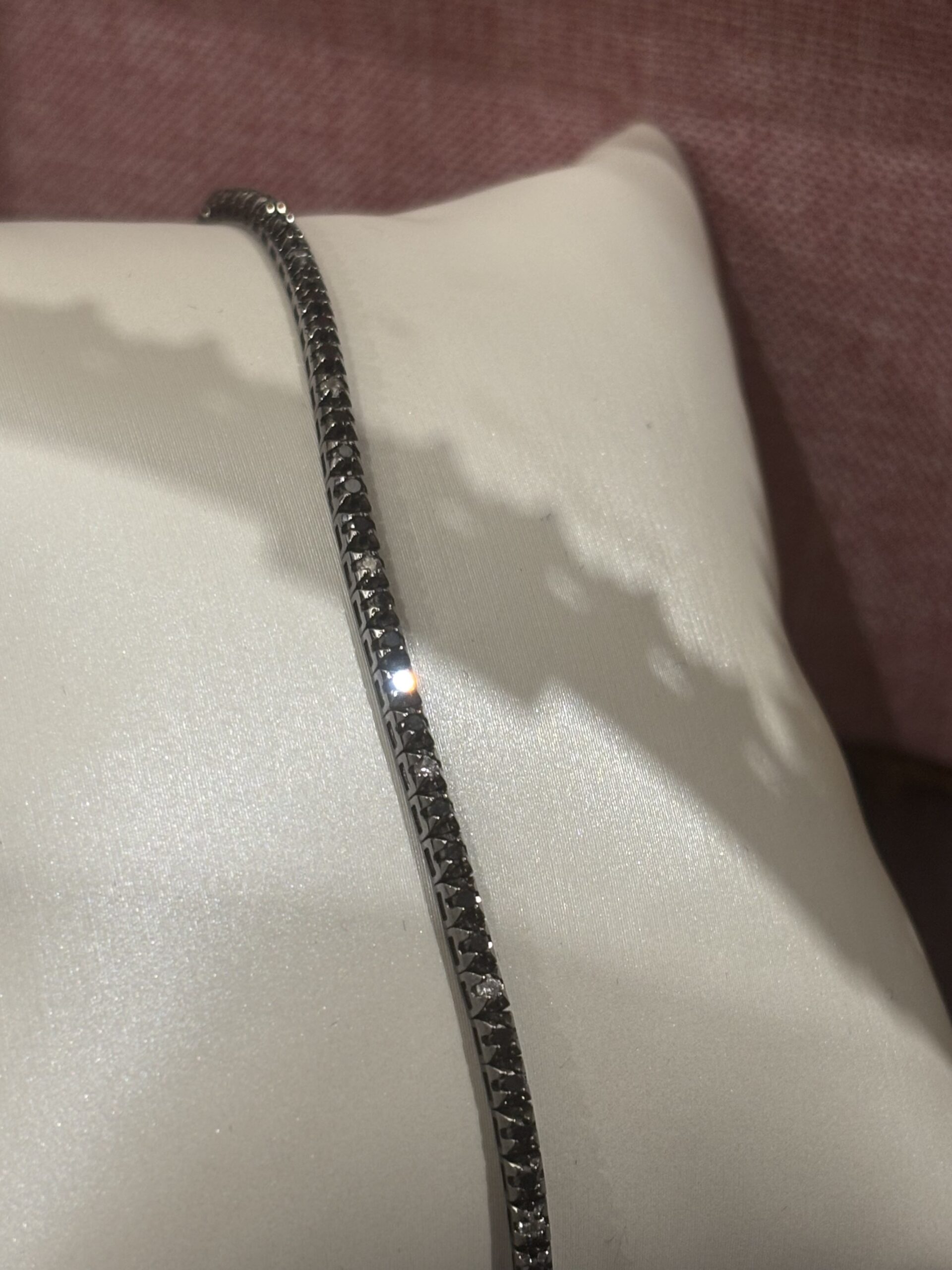 Bracciale tennis in oro bianco rodiato nero con diamanti black & white.